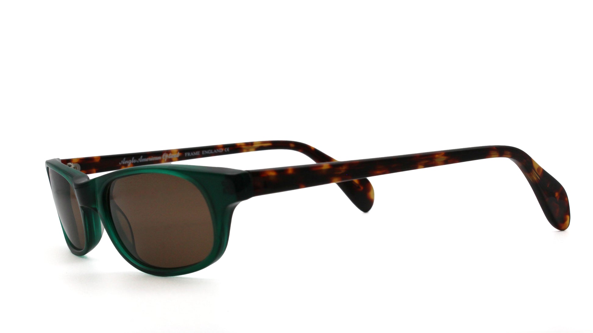 Model: Fargo, frame front colour Green/ Sides Tortoiseshell, material cellulose acetate, Lenses: Brown UV 400.